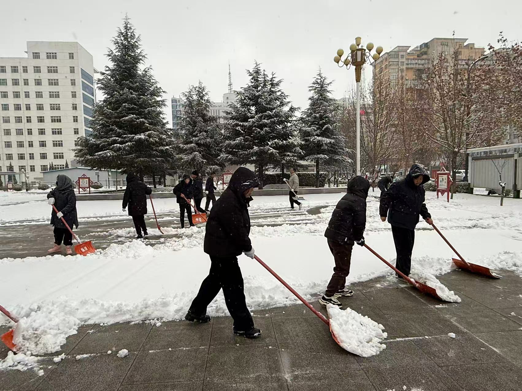 為確保道路暢通無阻,保障市民安全出行,集團(tuán)公司各基層單位服務(wù)點迅速響應(yīng),以雪為令、聞雪而動,在市政府、澤州縣政府、市醫(yī)院、市“三館”、富士康園區(qū)、陽城北留鎮(zhèn)、蘭花城、花園水系公園、兩河公園及百潔物業(yè)各服務(wù)小區(qū)等區(qū)域,開展清雪除冰專項行動,F(xiàn)場,除雪機(jī)械轟鳴作業(yè),干部職工手持鐵鍬、掃帚等工具,分工協(xié)作、默契配合,有的操作推雪機(jī)開道,有的揮動鐵鍬鏟除堅冰,有的用掃帚清理余雪……寒風(fēng)凜冽中,處處可見熱火朝天的勞動場景。